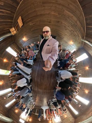 - 360 camera cocktail hour meet and greet with your guests from a dog's P.O.V.