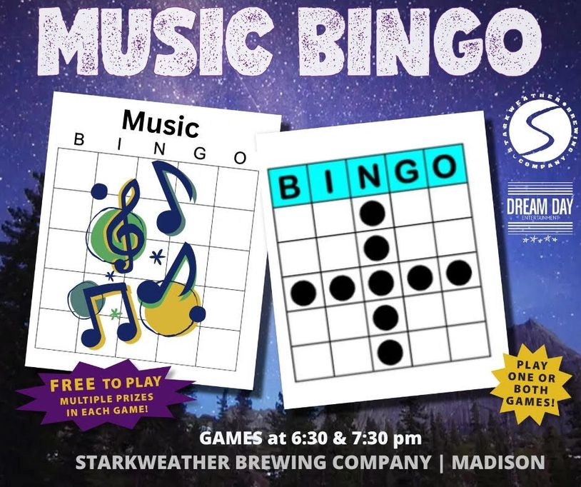 There will be two separate games, one at 6:30 and one at 7:30, with multiple chances to win prizes in each game. Play one or both games! No boring numbers here, just placing one hit song after another as you play BINGO to the music. Bingo meets Name that Tune!