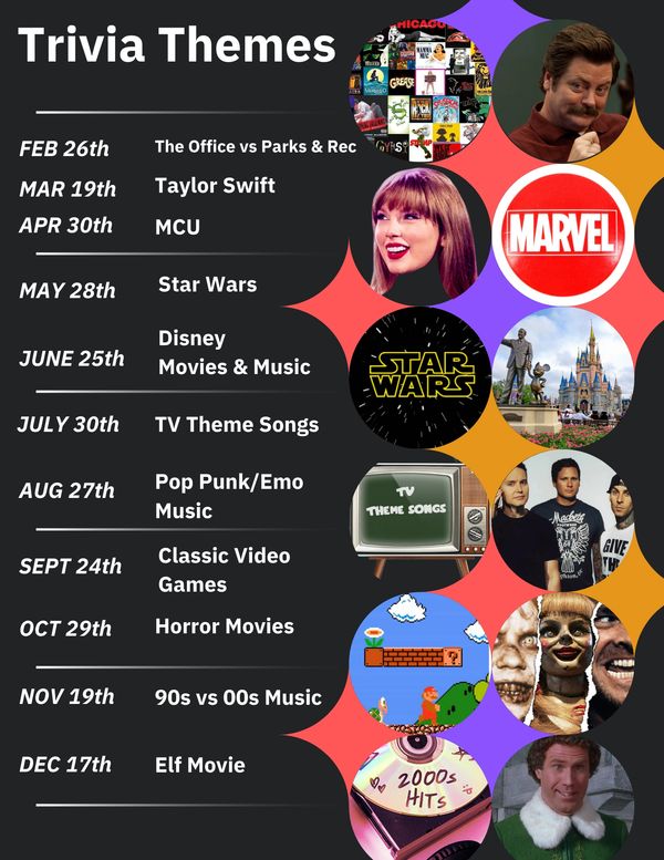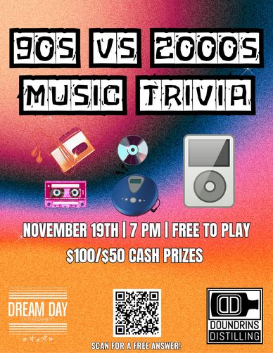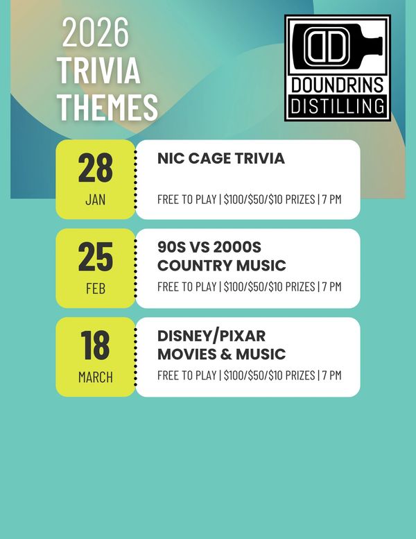 Join us for a themed trivia night of fun once a month at Doundrins Distilling.