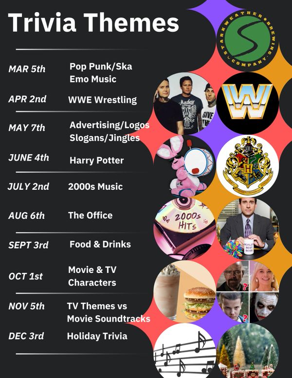 Join us for a themed trivia night of fun at Starkweather Brewing the first Wednesday of every month.